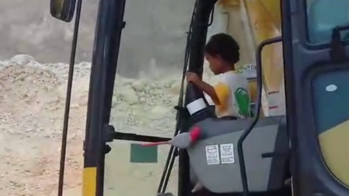 印度4岁小孩驾驶小松挖掘机,操作还很熟练
