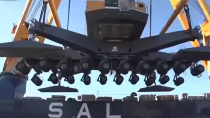 世界上最大的起重机,数数这是吊起多少个起重厢