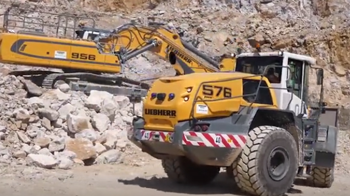 挖掘机装载砂砾卡车-斗山履带挖掘机视频
