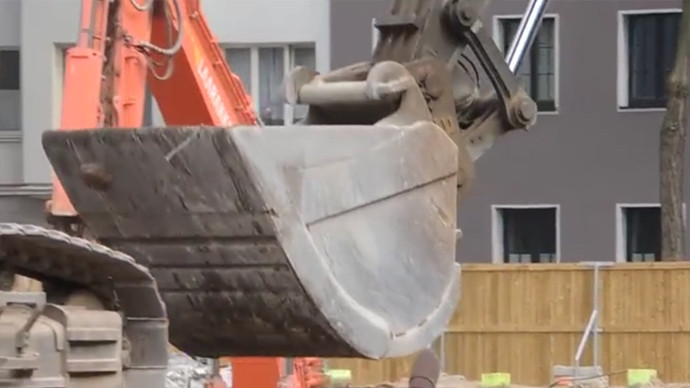 沃尔沃EC700挖掘机在工地施工,它干活的力量很足啊