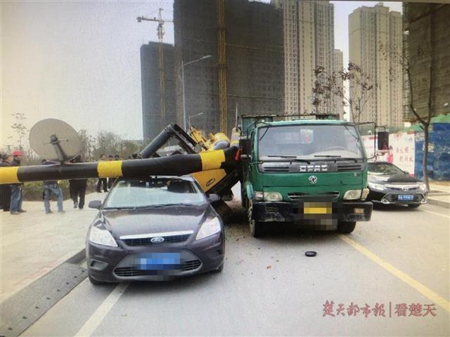 “背着”挖掘机还强过限高杆,挖掘机掉下砸中路边车