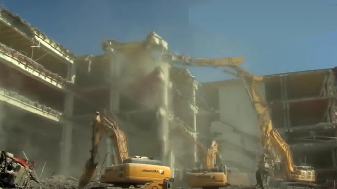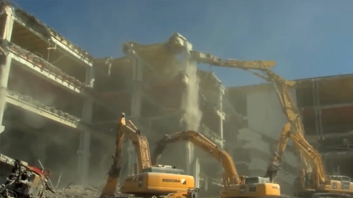 【热门】疯狂的移动破碎机 一栋高楼瞬间被蚕食