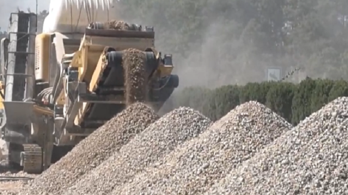 挖掘机和颚式破碎机配合, 粉碎石头毫不含糊