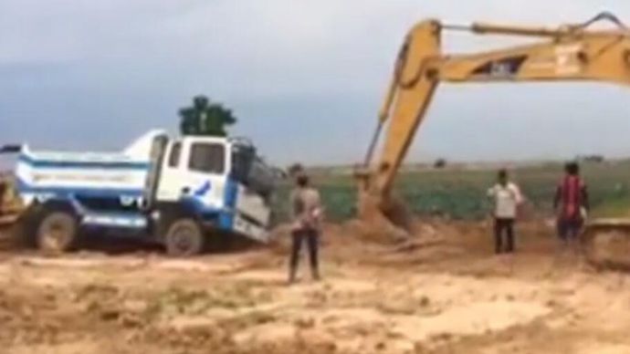 啥叫霸气,小车司机挑衅铲车,铲车司机仅用十秒就把小车撕成碎片