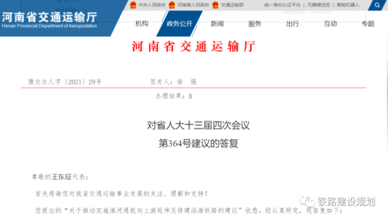 河南省交通运输厅:推动南信合、沿淮铁路早日纳入规划