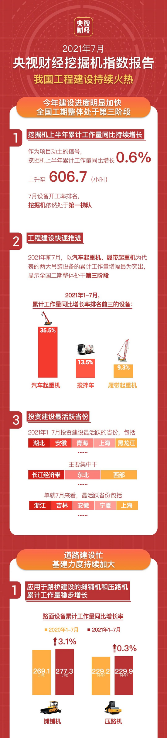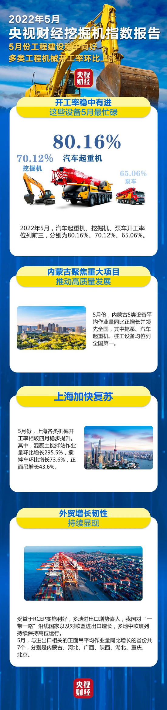 央视财经挖掘机指数|5月汽车起重机、挖掘机、泵车开工率位列前三