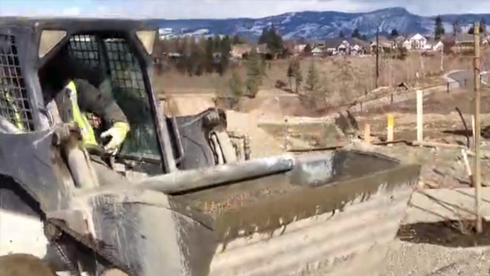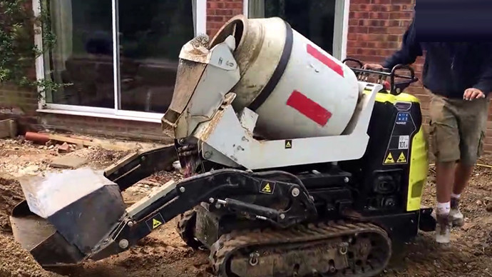 迷你铲车的铲斗设计成搅拌机,小型混凝土工程利器