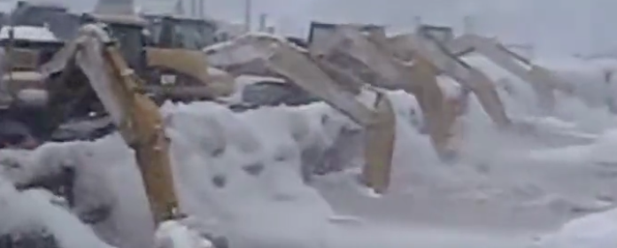 冬天了,各位来看看这台日本挖掘机是怎么铲雪的?