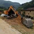 室内挖掘机碎水泥板作业,包工头真大胆靠这么近指挥!