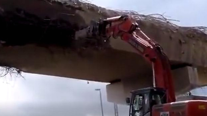 看老外用6台挖掘机和谐高效的拆除立交桥,搞工程机械的都学学!
