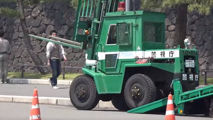 实拍:日本警用车运输丰田叉车,不得不说他们的科技有多先进!