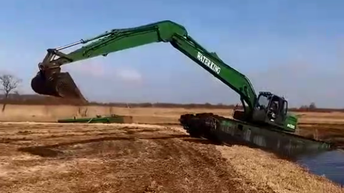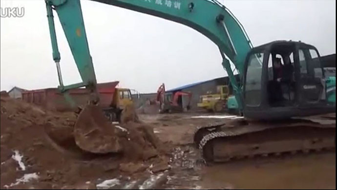 坐挖掘机洗澡,这水颜色没谁了吧!