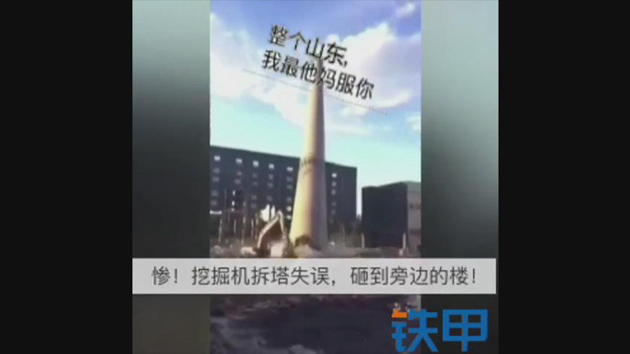 【甲友】惨!挖掘机拆塔失误,砸到旁边的楼!