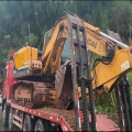 大型高科技拖车运输75吨挖掘机,没有挖斗照样下拖车!