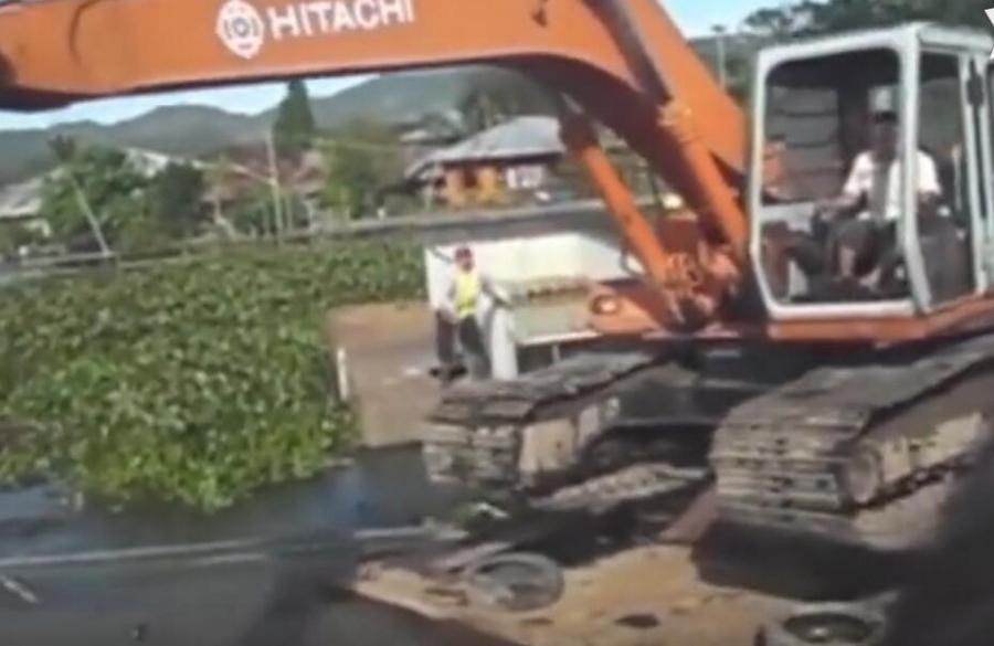 挖掘机正在清理河道,突然发现不对劲,下一秒司机的反应厉害了!