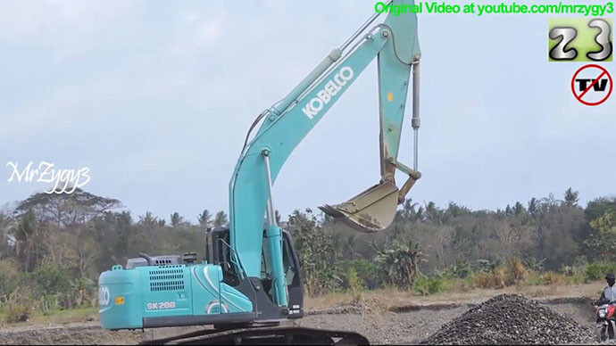 开这挖掘机的肯定老师傅,不紧不慢,动作还很连贯