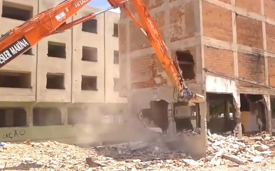 万里挑一的挖掘机高手拆烟囱,我服了第三个看热闹的工人