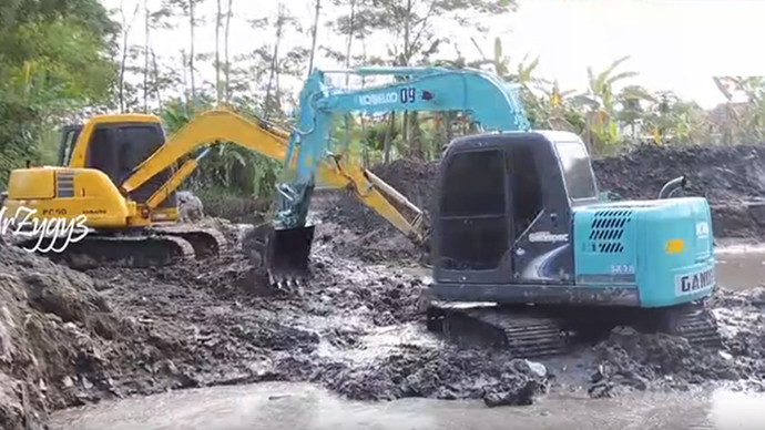 【眼界】神钢SK75迷你挖掘机挖掘池塘