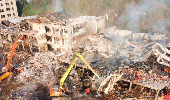 【事故】温岭爆炸事故现场 臂展26米挖掘机连夜救援