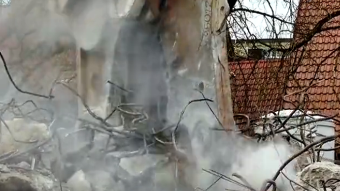 利勃海尔挖掘机拆除桥梁,直接用“钢牙”咬碎!