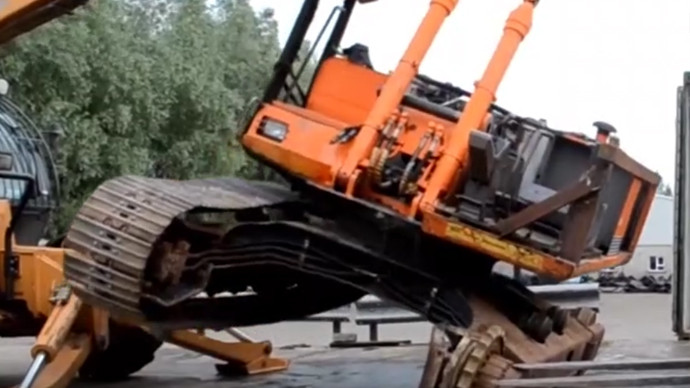挖掘机被一个集装箱打包带走,这是要成翻新机的节奏啊