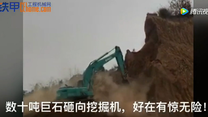 【甲友圈视频】 数十吨巨石砸向挖掘机,好在有惊无险!