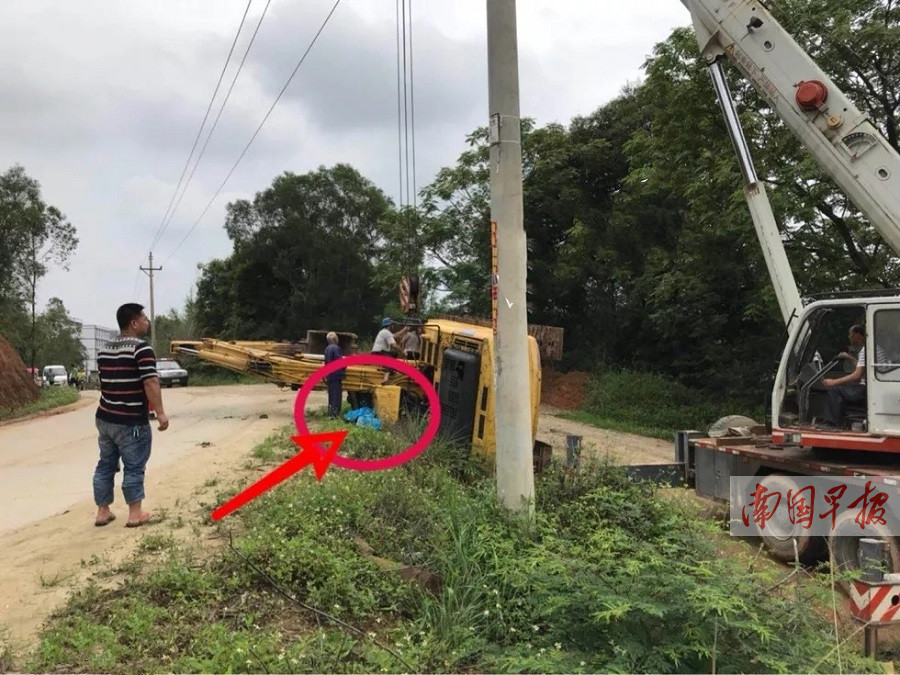 钦州一挖掘机卸下时发生侧翻 司机跳车被砸身亡