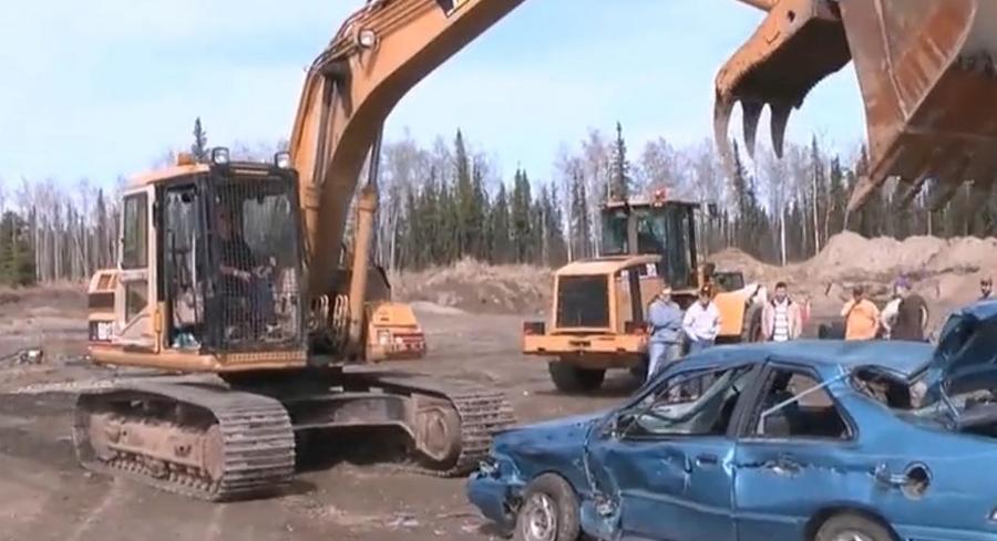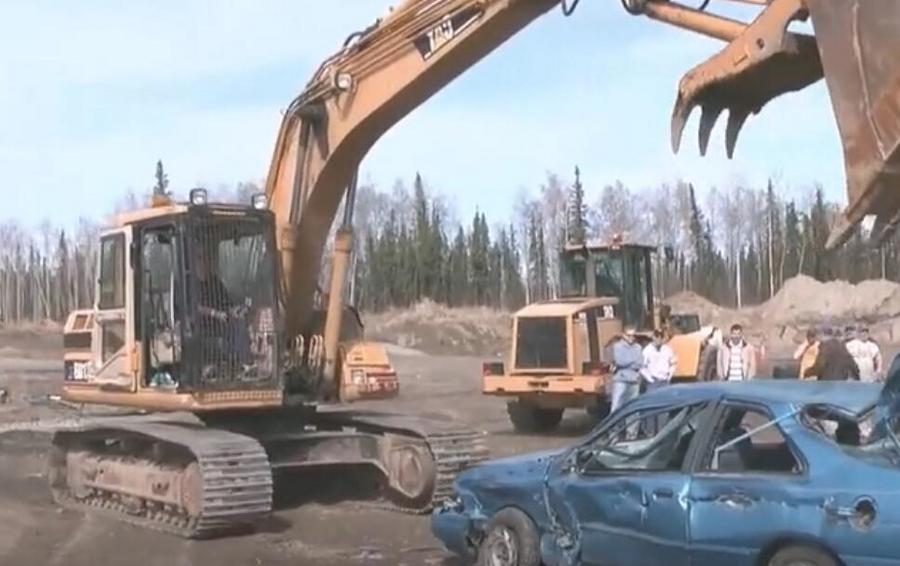 挖掘机砸小轿车,就是这么轻松