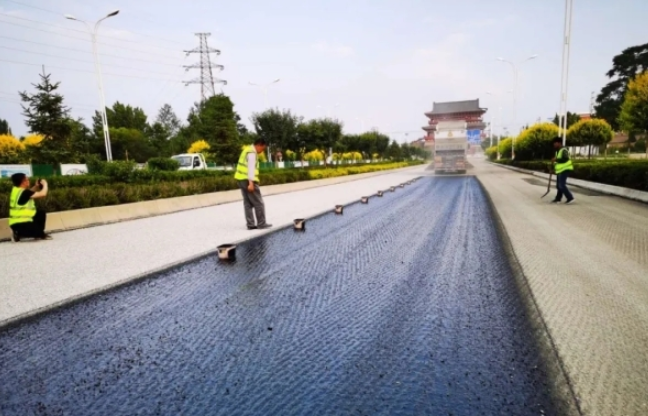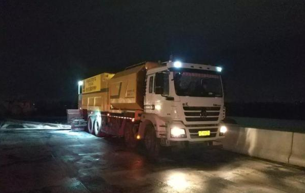 白天扫好卫生,铺盖沥青同步车。晚上铺沥青。