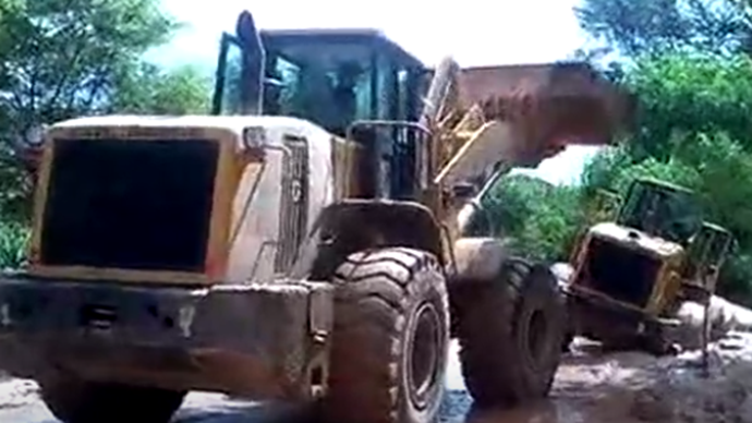 泥石流后的装载机陷车,看老司机怎么强行解救的!