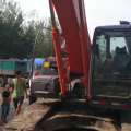 神钢200挖掘机现场上板车,师傅技术有点尴尬