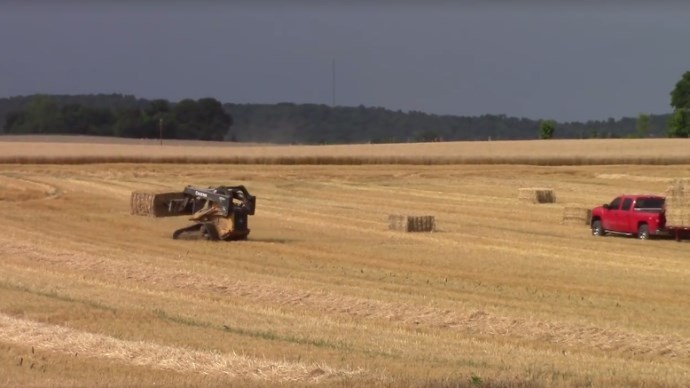拖拉机运麦秸超限高引事故 装载机拽出拖拉机