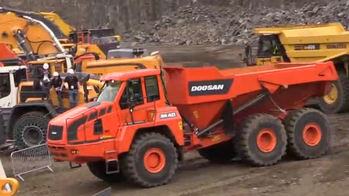 展会实拍,斗山轮式装载机装车过程演示