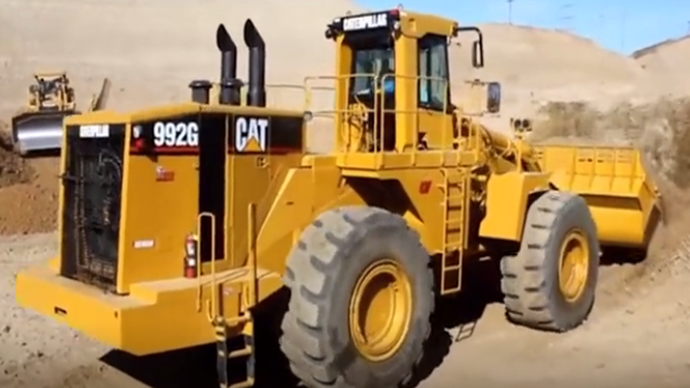 卡特992G装载机装车,内部和外部视图