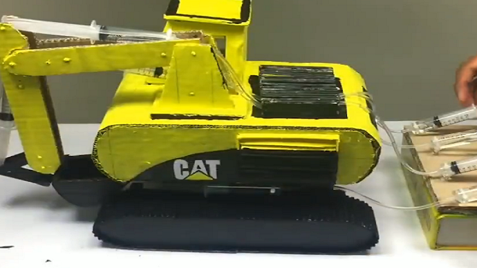 手工牛人用硬纸板做的挖掘机, 看起来像真的一样