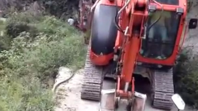拖车运输挖掘机,实拍新手司机开挖掘机下车