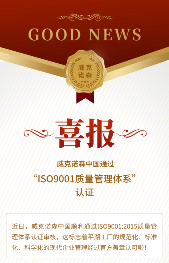 喜报 | 威克诺森中国通过ISO9001质量管理体系” 认证