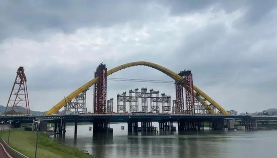 国内首座千吨级非对称大跨度异型八面体拱肋整体提升合龙