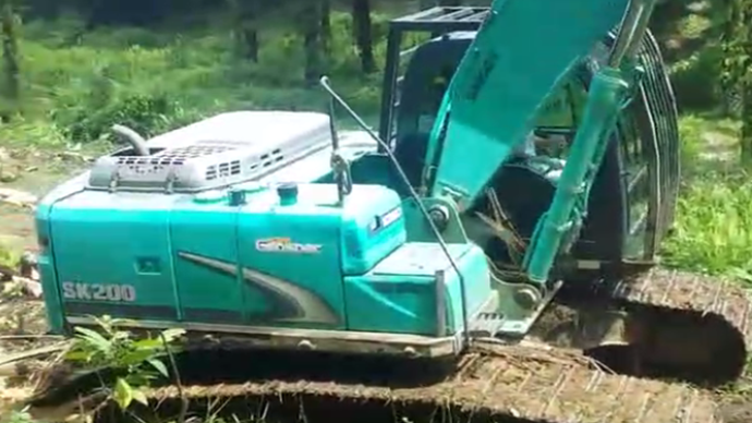 挖掘机司机用挖斗切割棕榈树,切割过程真是爽啊!