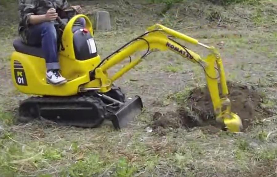 实拍世界上最小的挖掘机:小松PC01迷你挖掘机挖洞作业