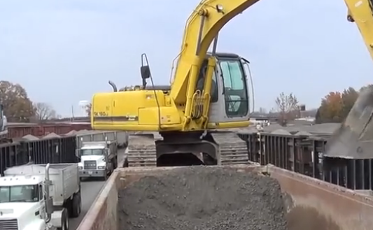 这是高手,挖掘机直接站在火车箱上卸货,保持平衡是个难题