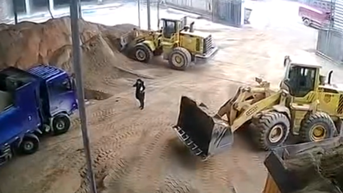 盲区呀!好好一个人,被铲车铲起来,扔进搅拌机