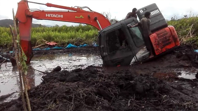 【热门】挖土机陷进泥沼中出不来,这可怎么办呢?司机最后放弃了