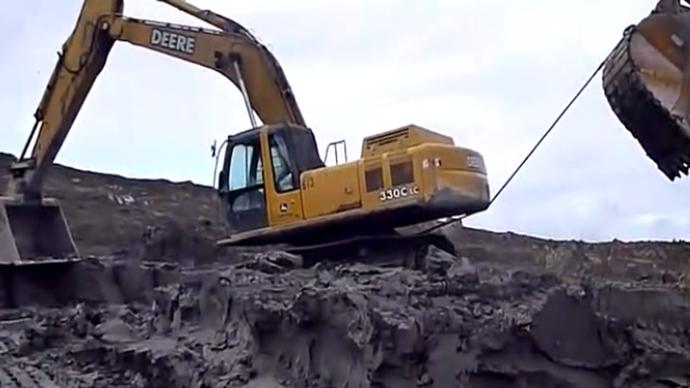 挖土机陷进泥沼中出不来,这可怎么办呢?