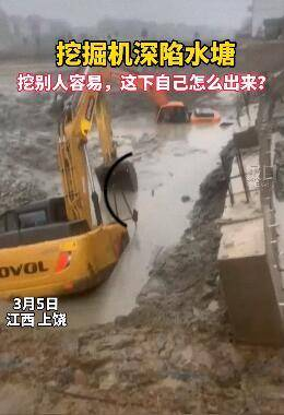 江西两台挖掘机陷进水塘被困多天,整个县里挖机师傅几乎都来施救,还是没辙