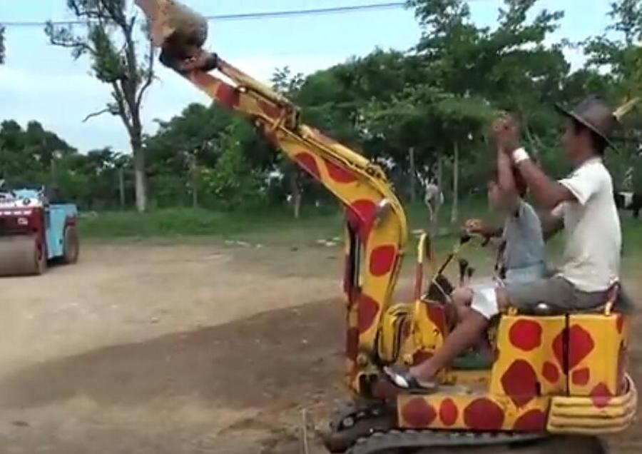 熊孩子跟老爸学开挖掘机 好有爱呀