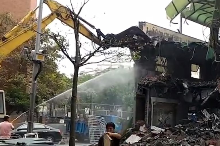 挖掘机大神们拆除整栋建筑物,遇到开挖掘机的就珍惜吧!