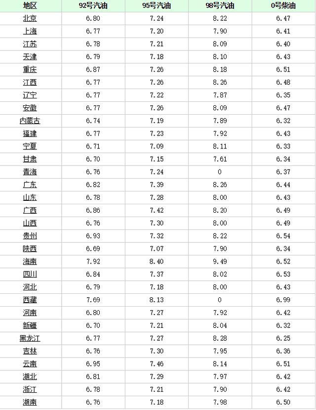 今日油价|2019年12月9日最新92,95汽油,0号柴油价格