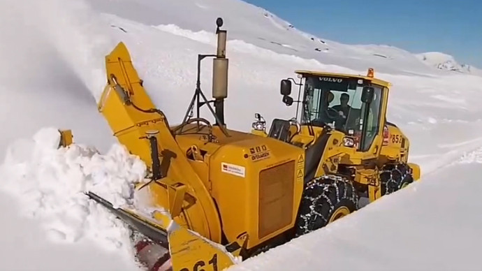 国外除雪车清理山区路面,看完整个人都舒服了!