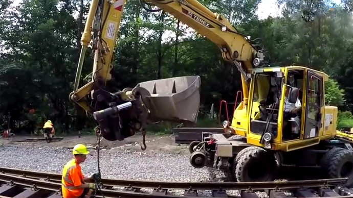 【热门】原来铁路还可以这么修建,一台挖掘机和几个工人就搞定!